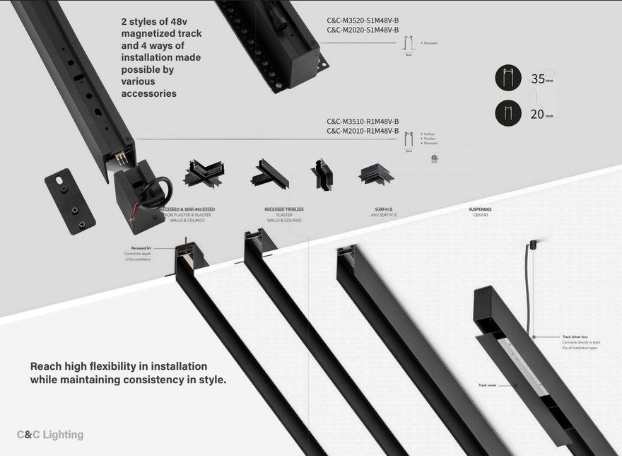 1M MAGNETIC TRACK 35MM BLC RECESSED - cc-M3510-R1M48V-B